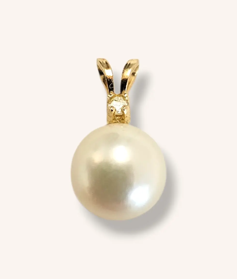 14K YELLOW GOLD PEARL & DIAMOND PENDANT - 00906J