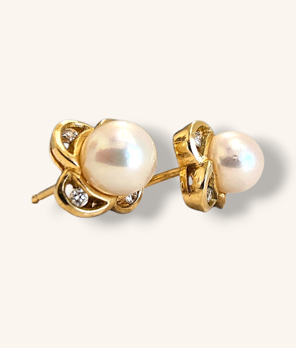 10K YELLOW GOLD PEARL & DIAMOND STUD EARRINGS - 00891J