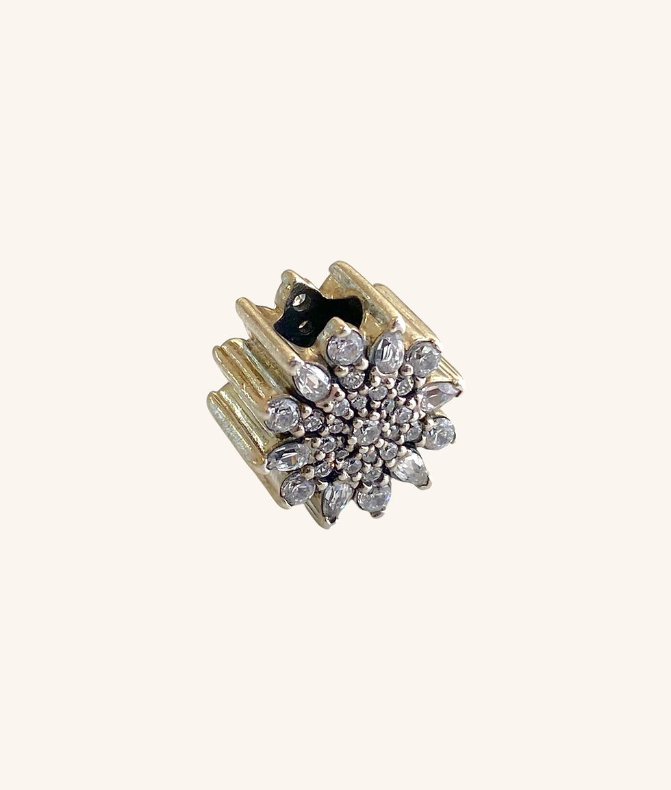 PANDORA 925 BLACK AND WHITE PAVE FLOWER CHARM - H