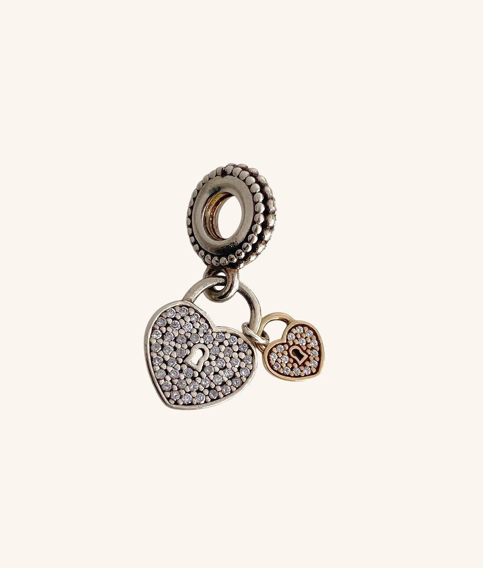 PANDORA LOVE HEART LOCKS CHARM 791807CZ 14K YELLOW GOLD & SILVER - H