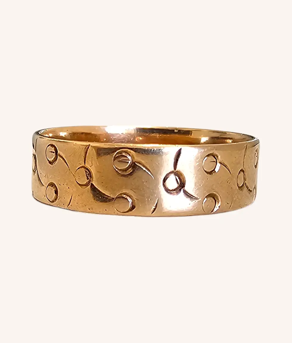 14K YELLOW GOLD ENGRAVED BAND RING - 00939J