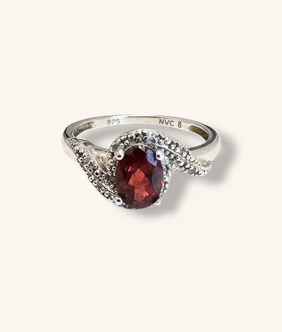 SILVER GARNET & WHITE STONE RING - 00514J