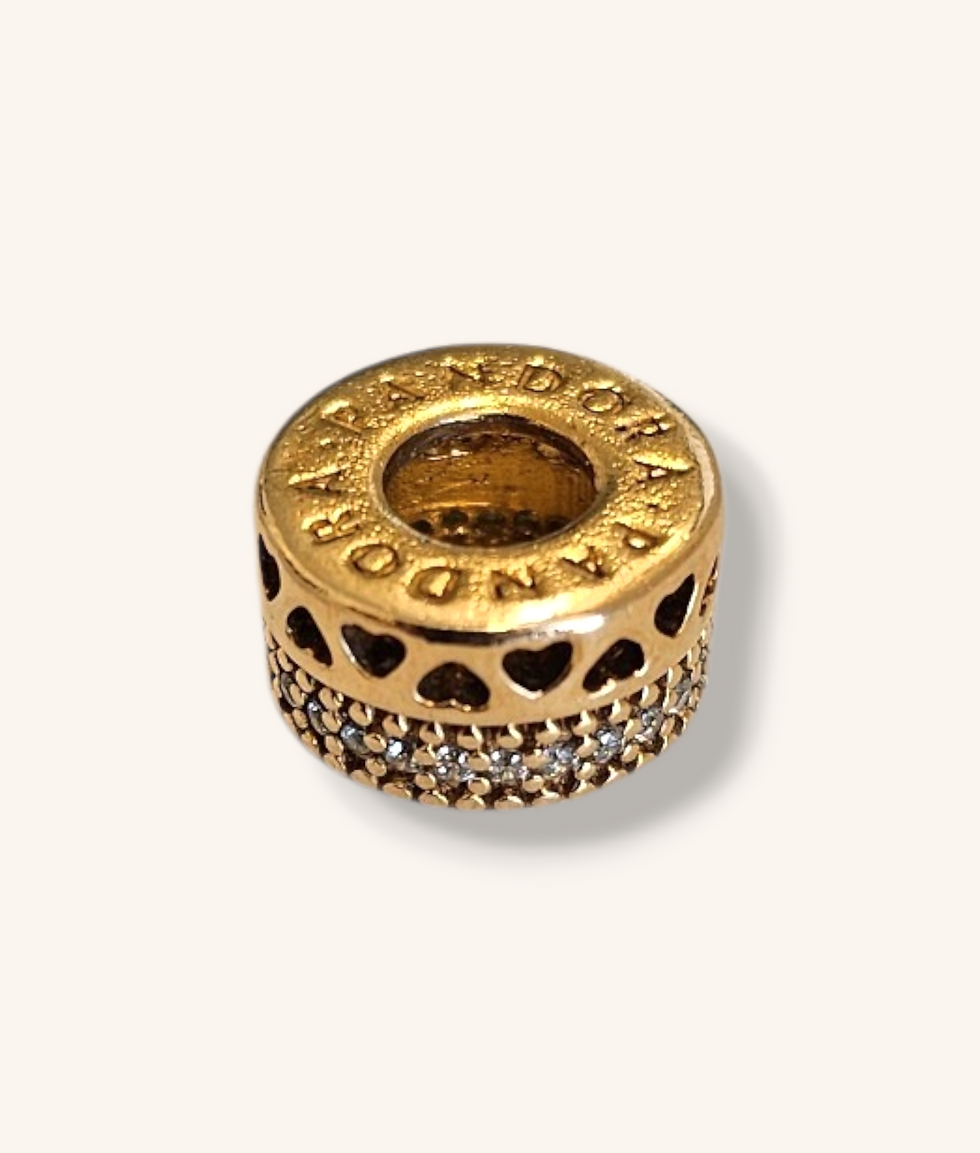PANDORA ROSE GOLD PLATED HEART SPACER CUBIC ZIRCONIA CHARM - 01061J
