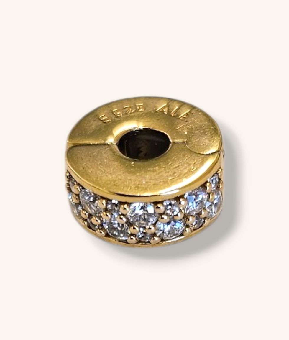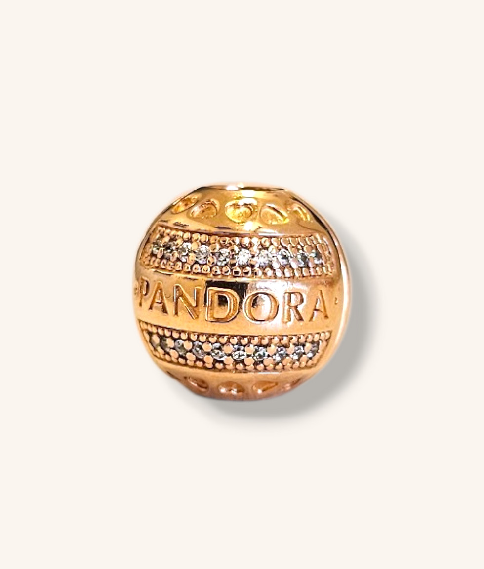 PANDORA ROSE GOLD PLATED CUBIC ZIRCONIA ROUND LOGO CLIP CHARM - 01063J